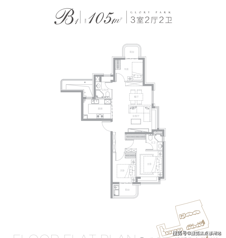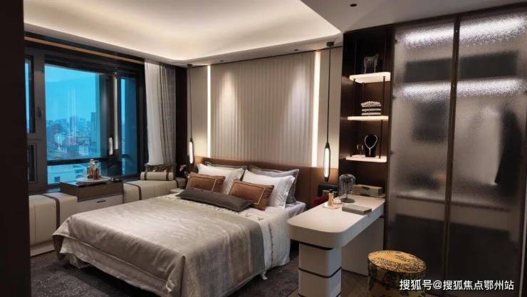 l超拓设计:三开间朝南+横厅,主卧套房配置独立衣帽间及270°转角飘窗,空间利用率大大提升。
