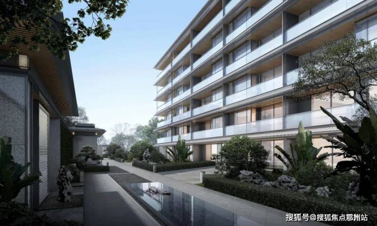 无锡主城千万级豪宅,梁溪区南长板块的豪宅蓝城南门小团月庐;低密6层纯墅社区,大面积高透玻璃+蓝宝石立面石材+金属铝板外立面
