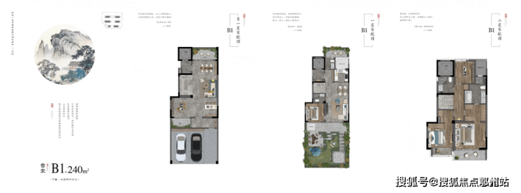 无锡蓝城南门小团月庐下叠是从负一楼到1、2楼,建面约为240、265㎡;