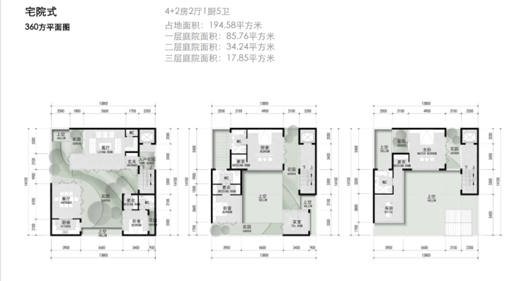 建面约290-360㎡宅院式合院;