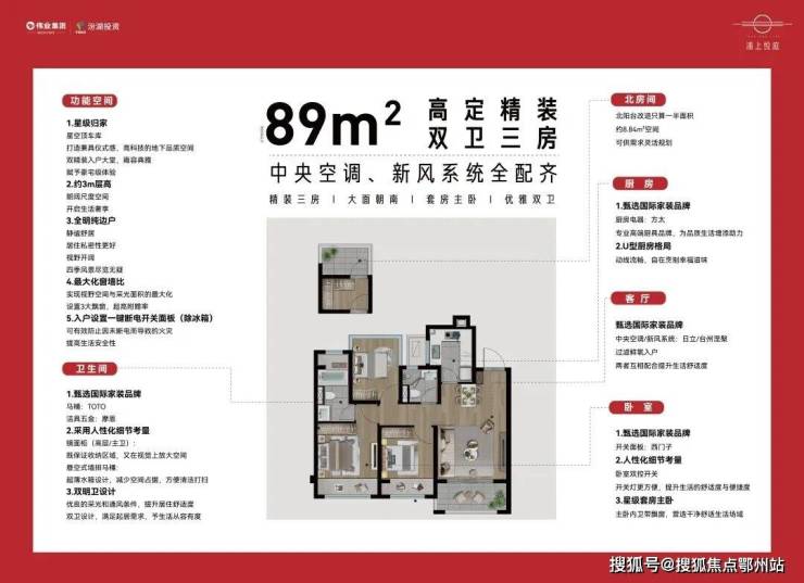 而少量的约89㎡户型更是做到了市场上罕见的双明卫三房,全部精装交付,配置了 中央空调+新风系统,是年轻置业人群的不错选择!