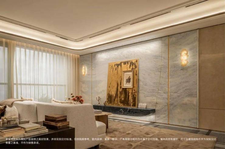 玄关+背景墙升级为天然石材,真正实现 “一户一宅” 的高定体验。
