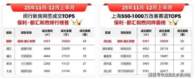 保利·都汇和煦当仁不让!自11月开盘以来,项目不仅强势霸榜闵行区销售金额、成交面积、成交套数榜单,更在上海550-1000万级改善赛道中脱颖而出,问鼎25年11-12月上半月销售三冠王,用硬核数据诠释何为“现象级热盘”。