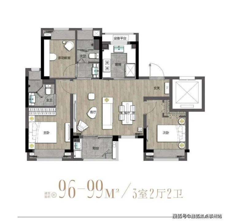 本次主推的建筑面积约96-99m²3室2厅2卫是本次的性价比王炸户型,三开间朝南超大面宽,双阳卧室南北通透,户型很抗打!建面约96m²户型样板间已开放!现可抢先预约体验!