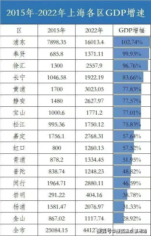 同时,根据2015-2022年的GDP增速调查数据发现, 「上江南·璟荟名庭」所在的奉贤区以99.93%的亮眼成绩拿下全市16区GDP增速第二。