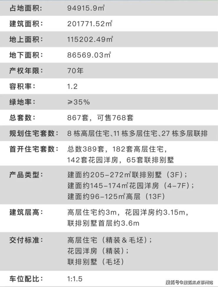 项目产品为建面约96-125m²高层住宅,建面约145-174m²花园洋房,建面约213-270m²联排别墅。