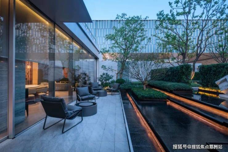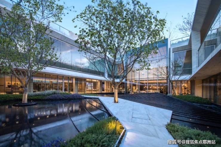 同时,部分采用 天青色釉面陶板,超扁平形制,同样搭配 大面幅落地Low-e三玻两腔玻璃,让建筑像是妙手剪裁的艺术品般行云流水,更大程度的为业主带来宽绰视野,体验摩登生活。