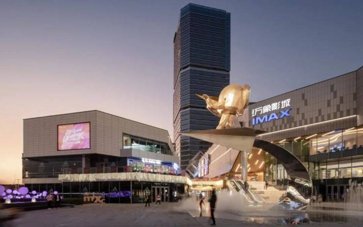 映入眼帘的高颜值外立面,无疑让人眼前一亮: 干挂石材+真石漆 的构成,整体立面高奢细腻,在蓝天白云的映衬下,质感强烈。