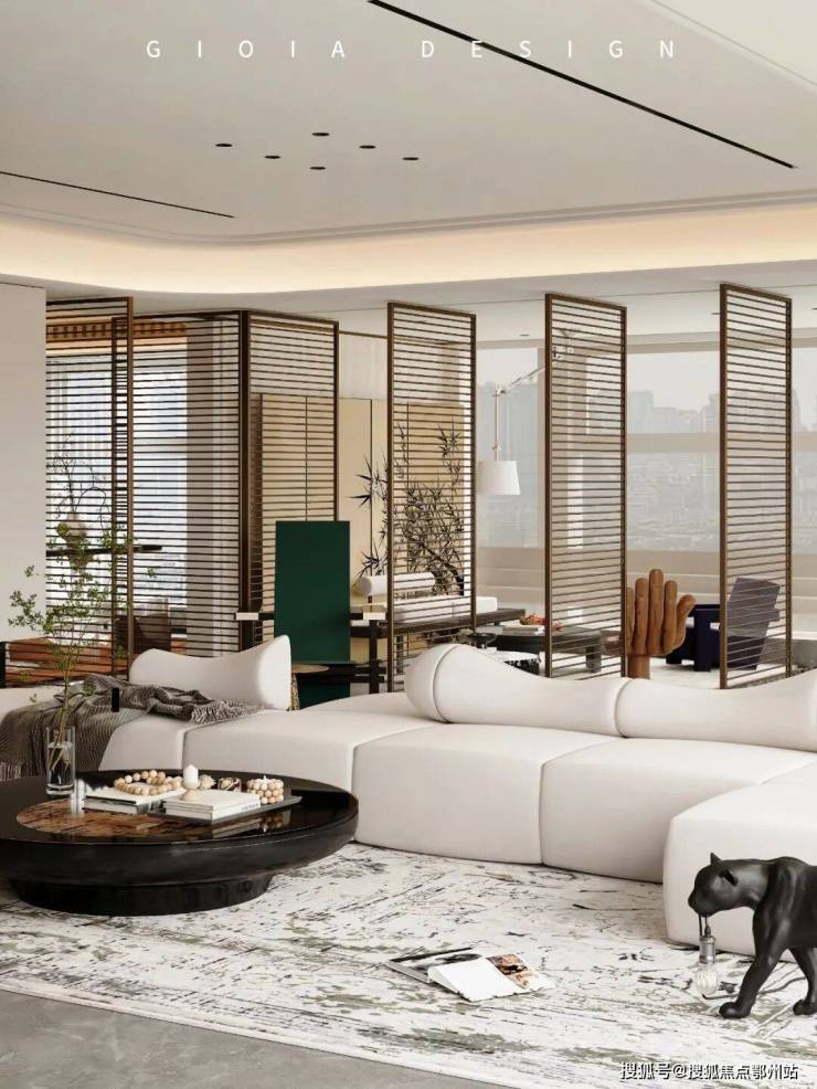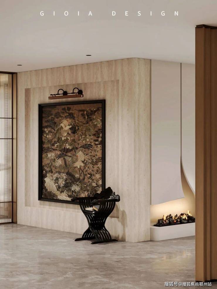 将艺术感进一步融入日常中。特别设计的专属门厅空间,是从电梯厅延伸到家,如同一处艺廊,放慢人的情绪;室内选用了 浅金色奢石(外界也称其为“芬迪白大理石”)作为主要的石材,曲面的木饰面也为浅色,整体给人以明亮感。