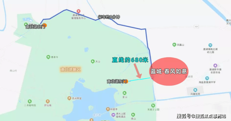 春风如意地处海盐县澉浦镇田元路与南北湖大道交叉口,北靠凤凰山,南面则是南北湖国家AAAA级风景区。