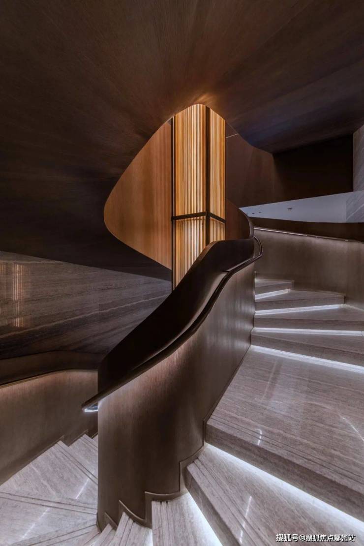 同时,部分采用 天青色釉面陶板,超扁平形制,同样搭配 大面幅落地Low-e三玻两腔玻璃,让建筑像是妙手剪裁的艺术品般行云流水,更大程度的为业主带来宽绰视野,体验摩登生活。