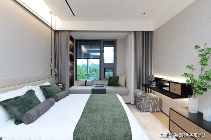 主卧豪华套房, 南向面宽约3.7米,进深约4.7米,南向连接 超大景观飘窗,奢阔大气感扑面而来;南向客房 开间约3米,配备亲景阳台,拥有更好的采光以及通风效果;北次卧北侧连接 宽约1.4米的阳台,可自由改造。