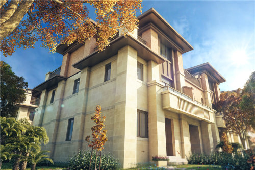 建筑品质:项目采用新亚洲风格,外立面造型丰富、时尚大气,优美舒适,韵味浓厚,在视觉上以红、咖和黄金麻为主组合出丰富的立面给人以壅容华贵、典雅的气息,建筑一二楼为部分干挂石材,后期易于维护,经久历衰,三楼为红色文化砖,色彩分明。