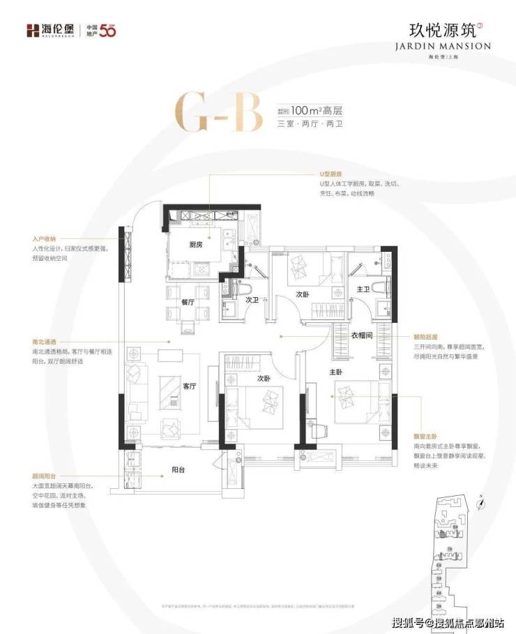 建面约100㎡的3房2卫户型,三开间朝南,主卧套房设计,几乎做到了市面上3房2卫户型能做到的所有优势。