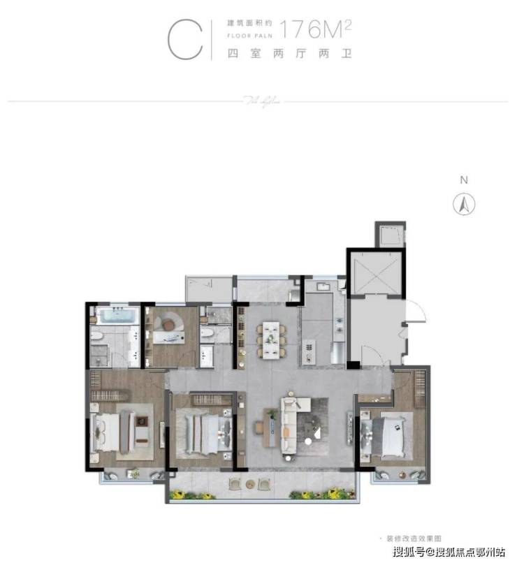 产品方面更是定位高端改善,建面约118-218㎡,面积段相当纯粹,更是直击盐城高端改善的心门。今天主力给大家推荐一下建面约176㎡的四房两厅两卫的大平层。