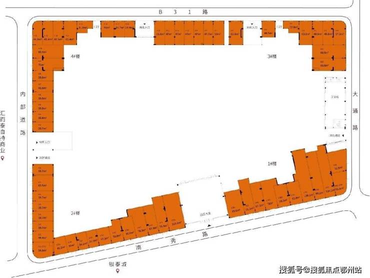 高性价比:得房率超90%,40年产权,物业费6元/㎡,适配餐饮、零售等业态。