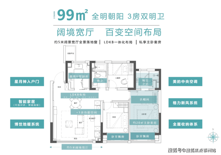 建面约20㎡主卧套房配备独立卫浴与衣帽间 ,打造私密尊崇的休憩空间。LDKB一体化设计打破空间壁垒,让客厅、餐厅、厨房、阳台贯通相连,增强家人间的互动交流,让亲密无间成为日常。