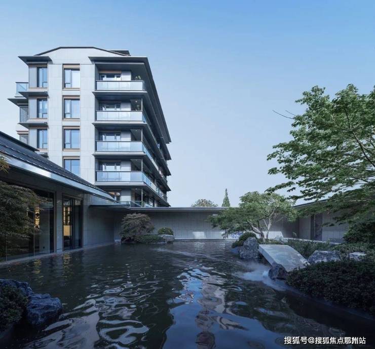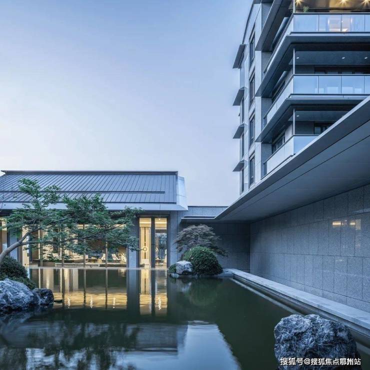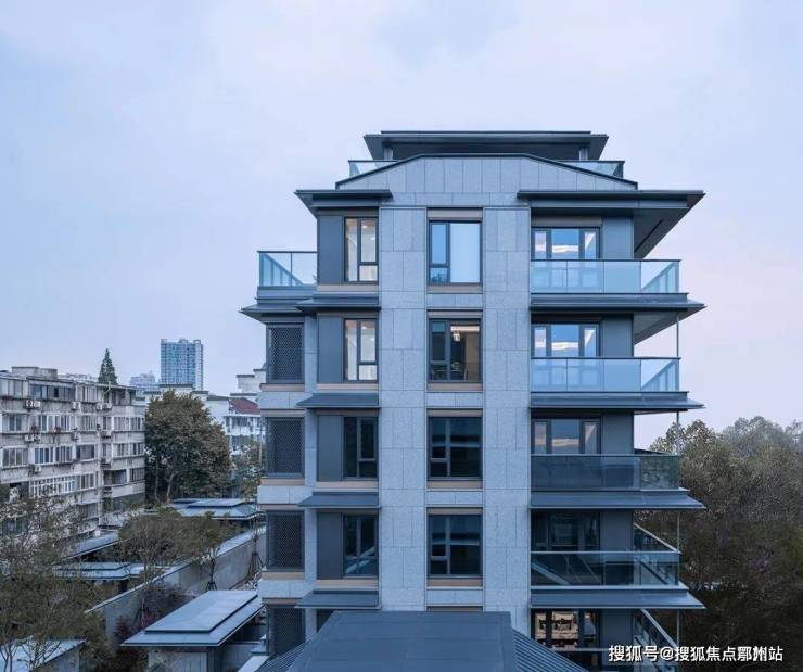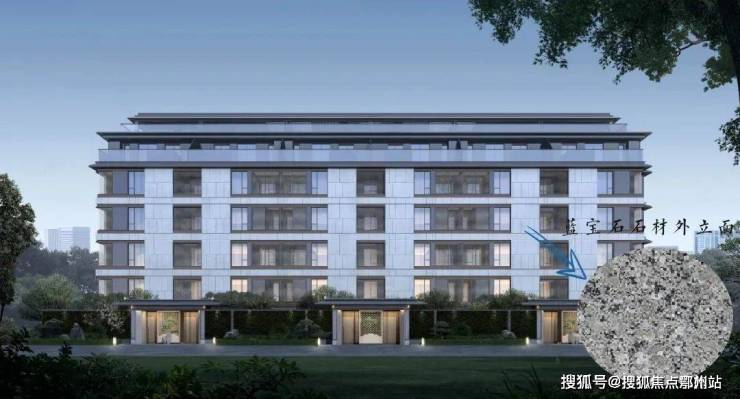 无锡主城千万级豪宅,梁溪区南长板块的豪宅蓝城南门小团月庐;低密6层纯墅社区,大面积高透玻璃+蓝宝石立面石材+金属铝板外立面