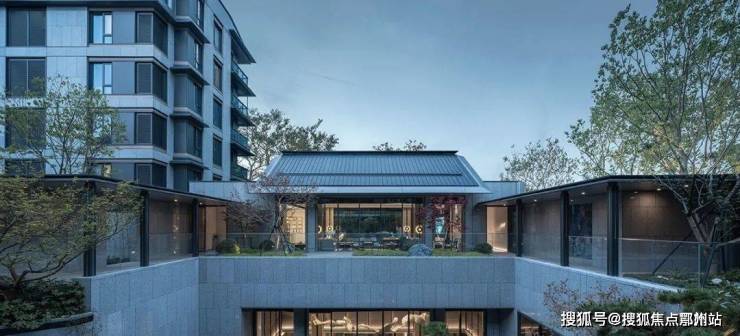 无锡蓝城南门小团月庐,大面积高透玻璃+蓝宝石立面石材+金属铝板外立面