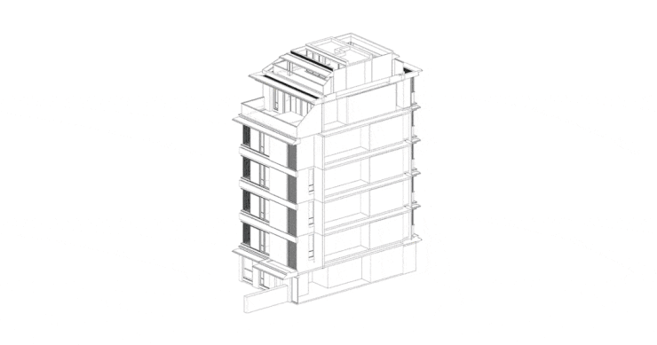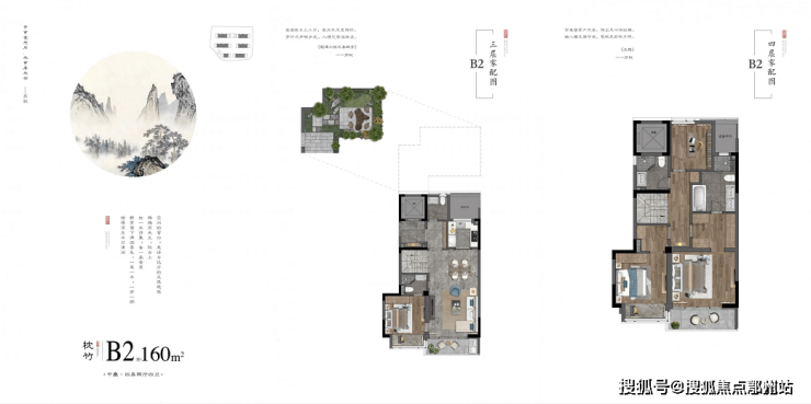 3楼到4楼为中叠,建面约为160、170㎡;5-6层加顶层露台为上叠,建面约155㎡、165㎡