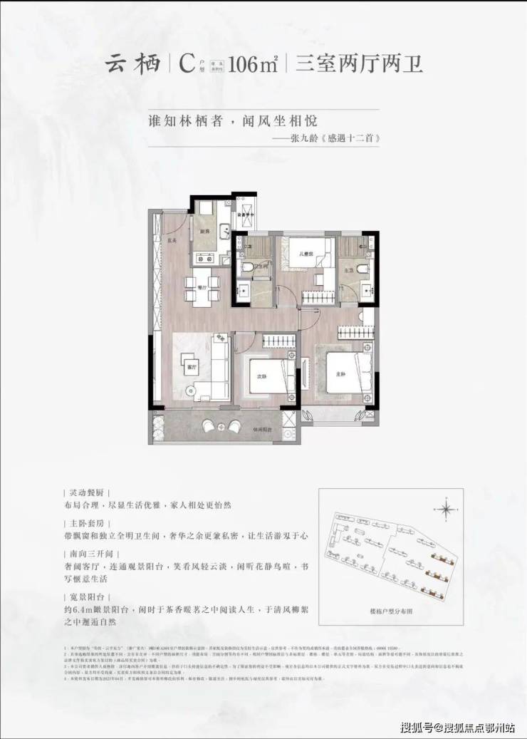产品面积:小高层98㎡/106㎡ 两梯四户 15层