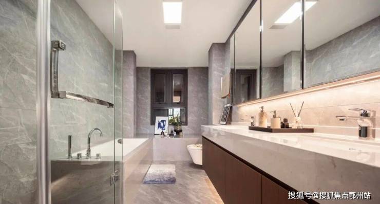 最有看点的 大主卧套间,面积超36㎡,堪称总统级套房, 独立尊享衣帽间,主卫的双台盆+马桶+淋浴房+独立浴缸五件套,高端项目的空间排布就是这么气派。