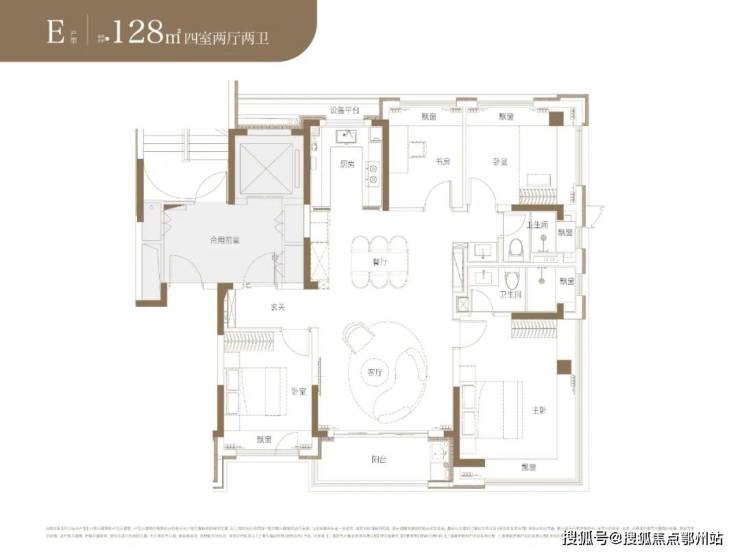 户型为建面约92-105-128-136-143㎡3-4房。