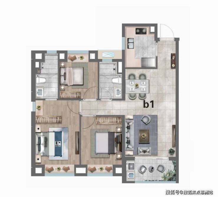 该户型功能性非常强,非常适合三口之家居住。