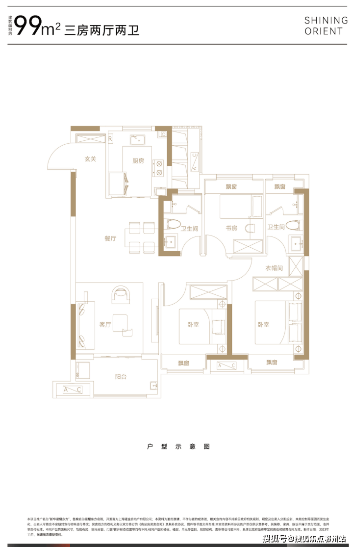 另外99平的户型还是全装修交付,对于后期业主的入住是非常省心的,这个户型格局方正,空间敞亮,适合一家三口居住。