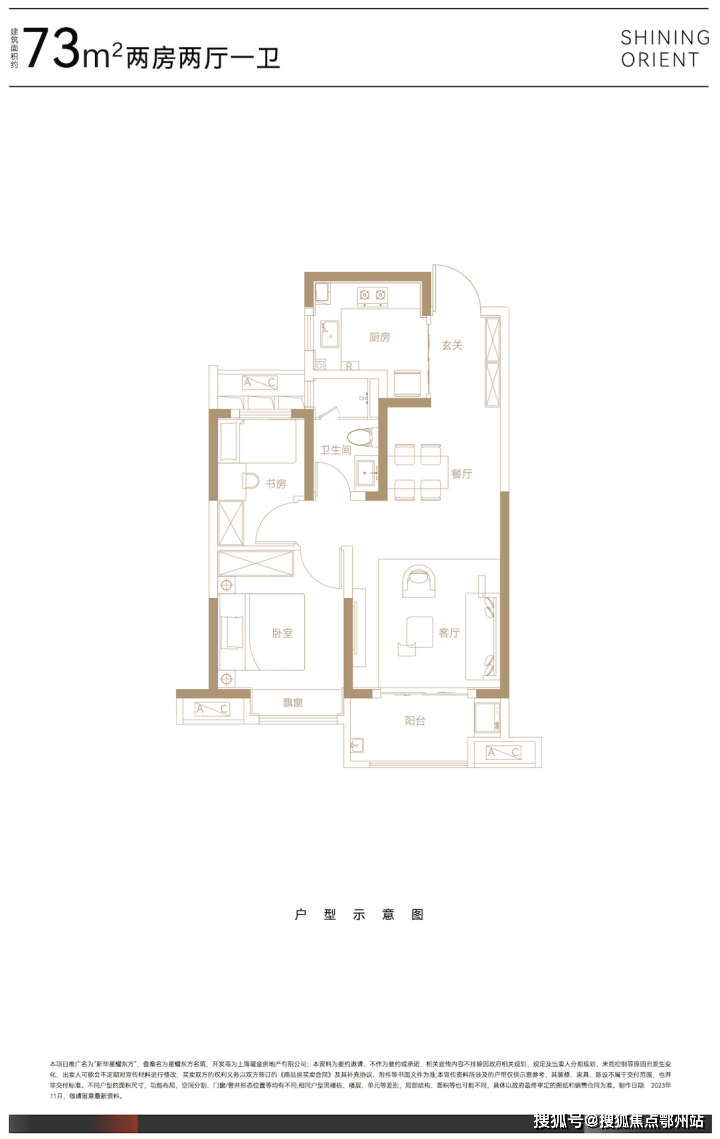建面约73㎡两房两厅一卫