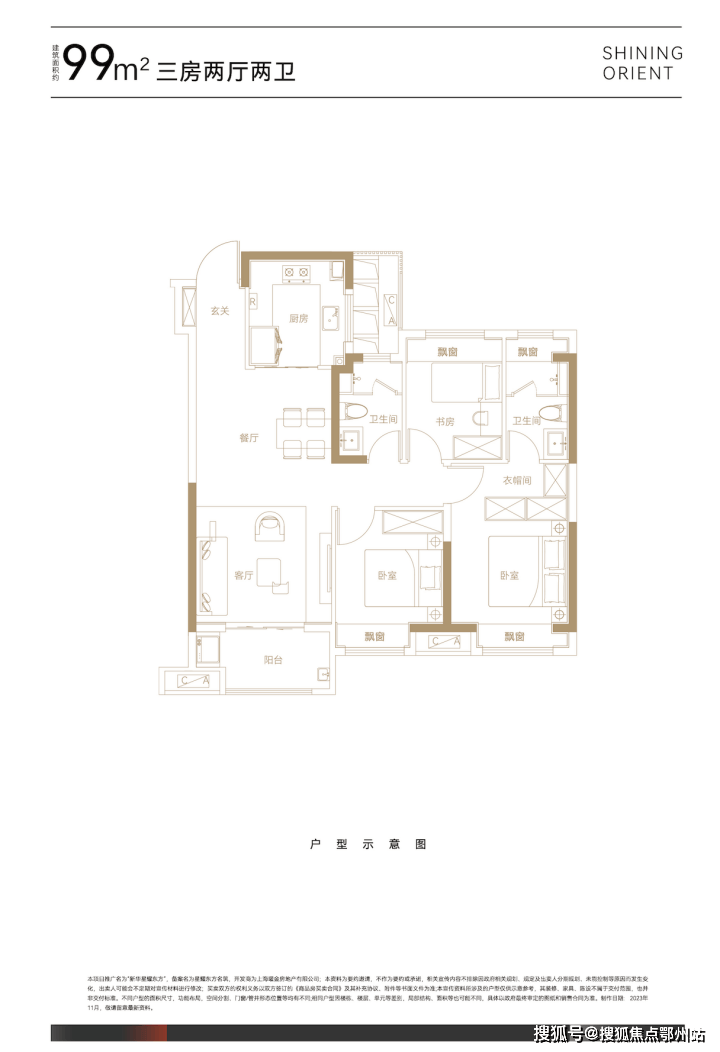 建面约99平㎡三房两厅两卫