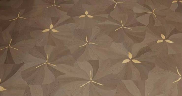 奢石材质与升级定制体系上,主卧标配约4.6米超大面宽贝母马赛克弧形皮革背景墙,地面采用和保利世博天悦顶豪项目同款的嵌铜荷叶拼地板,且嵌铜花色可以选择。玄关+背景墙升级为天然石材,真正实现 “一户一宅” 的高定体验。