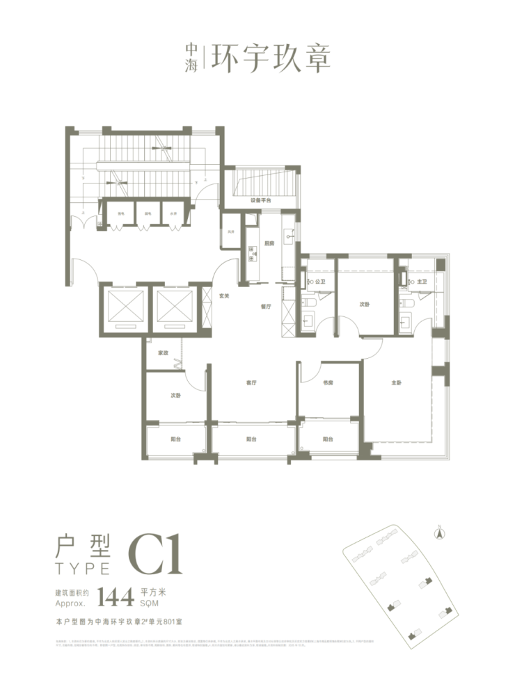 此外,项目还将推出层高约3.3米的建面约144㎡4房,享一线公园景观。