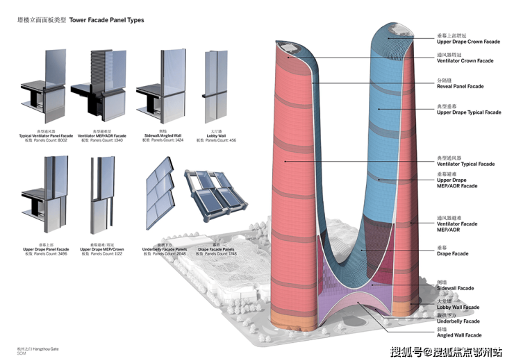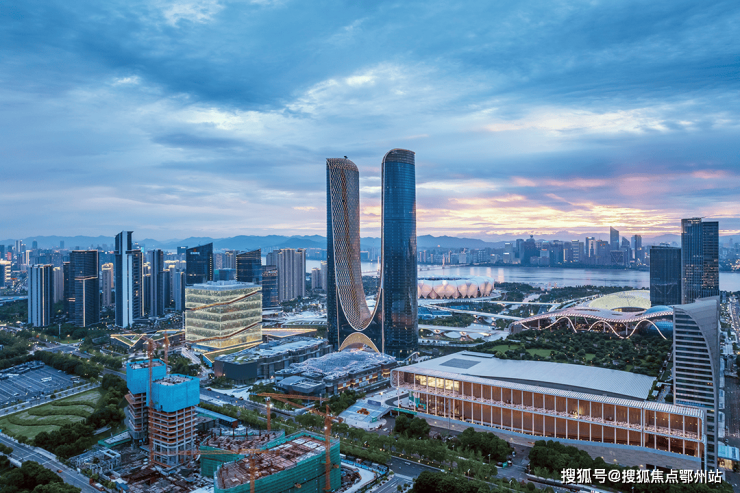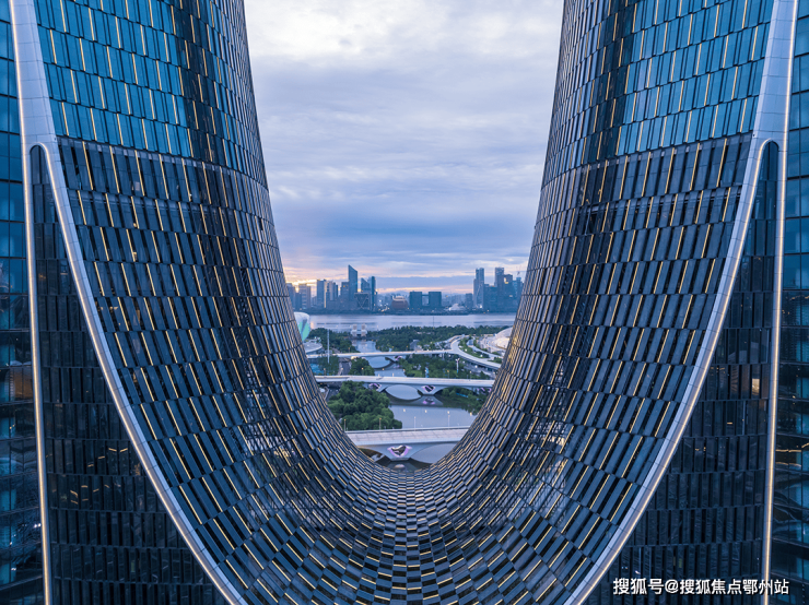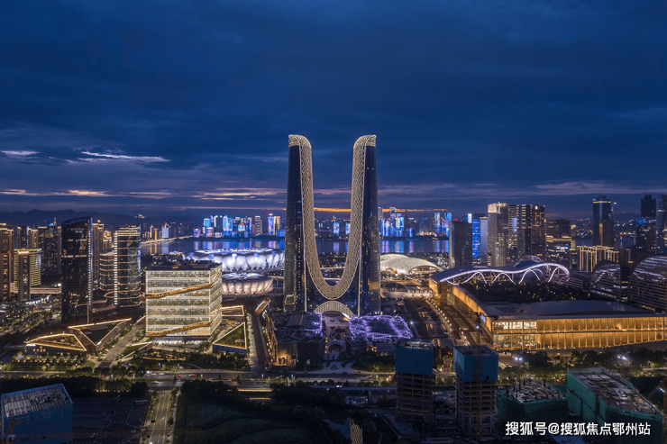 SOM在设计理念上结合杭州文化的城市之形、拱桥之意、园林之神,打造出以杭州拼音首字母“H”为蓝本的建筑造型,双塔羽翼设计寓意城市的展翅飞翔,与江对岸钱江新城的“日月同辉”建筑遥相呼应。