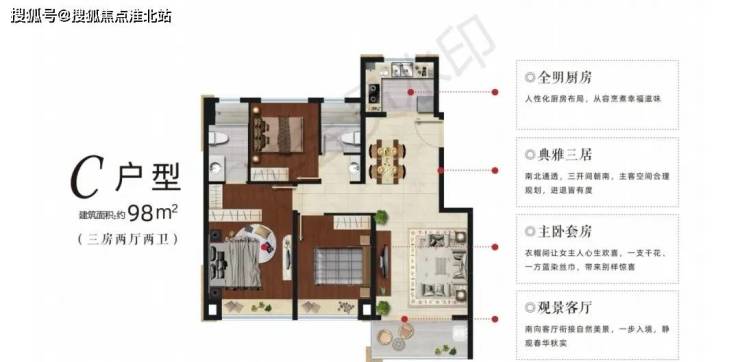 洋房产品面积段是建面约74-118㎡,很容易让人剁手的面积段。