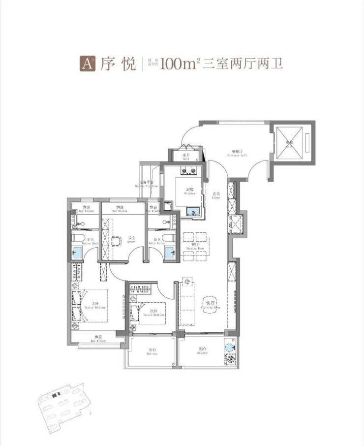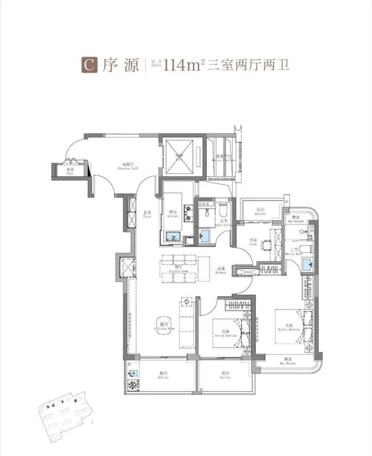 建面约115㎡3房2卫只有二期才会有