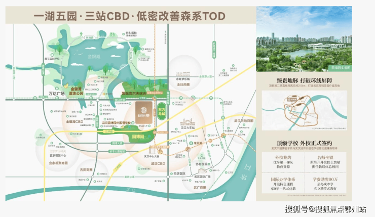 小区楼下就有一个主题绿化公园,目前已建成一部分了,在小区对面就是金银湖国际高尔夫球会,东侧是东方马城,北面约600米就是园博园的大门,另外项目距离金银湖绿道也很近。生态环境非常好。