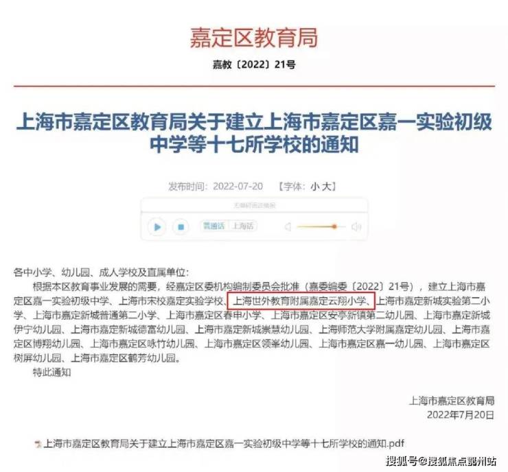 最近,上海市嘉定区教育局官网发布: 上海市嘉定区教育局关于建立上海市嘉定区嘉一实验初级中学等十七所学校的通知。