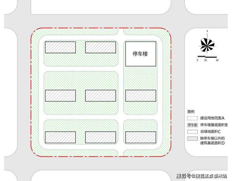 独立设置的且专门用于停车的停车楼宜设置屋顶绿化,所属建设用地范围内绿地率计算公式为绿地总面积与停车楼以外的建设用地总面积的比率,建筑密度计算公式为除停车楼以外的建筑基底总面积与建设用地总面积的比率。