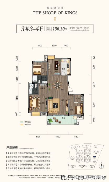 面积:135㎡(4房2卫)