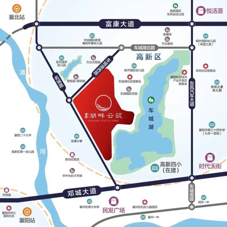 为襄阳市重点学校,东风小学中学高中(为东风职工子弟学校),距离项目约2.3公里,以及规划中的高新四小,幼至高等配套教育供您选择,为您孩子的学习-路保驾护航。(具体学区以交房后教育局划分为准)