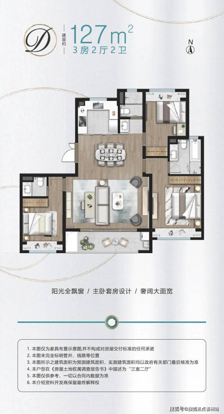 在拥有大尺度南向阳台的背景下,该户型居然还配备了 5个飘窗 ,大大提高了该户型的实用面积!