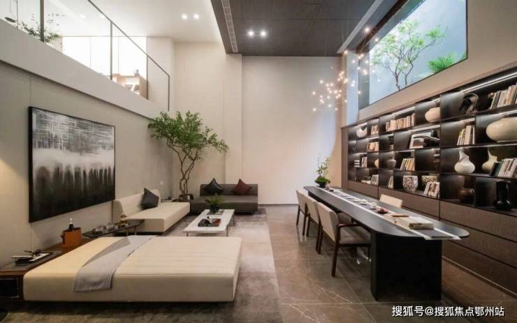 看一眼外立面, 白色石材、香槟色的木纹铝板、大面积玻璃的拼接组合,怎么看都不像一个门槛只有400万+的低密叠墅。玉琮水景、山石跌水等等融入景观的大量良渚文明元素,弥漫着专属于杭州的千年气韵。满眼的“越级感”再配上 只有1.2的超低容积率,最终才呈现出一座全低密 真双叠大盘的样子。