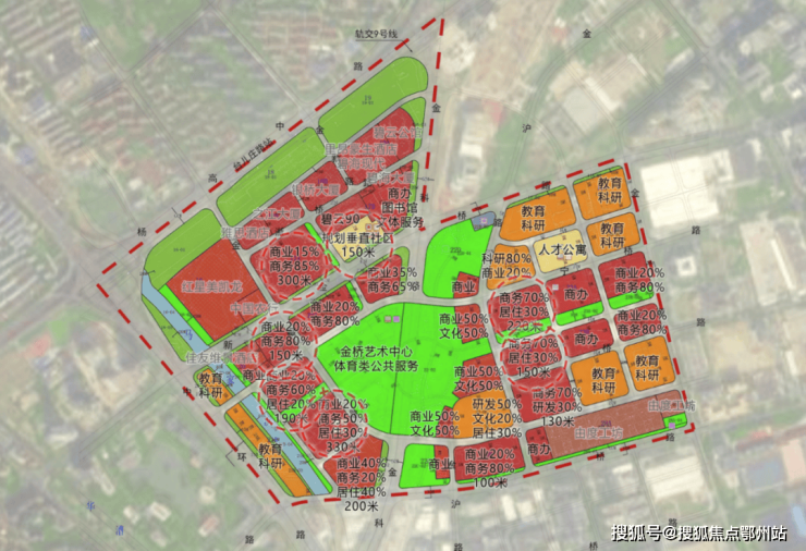 项目规划有 金桥艺术中心、教育科研、研发文化、商业、中央公园、办公楼 等用地,未来居住品质还是非常有保障的。