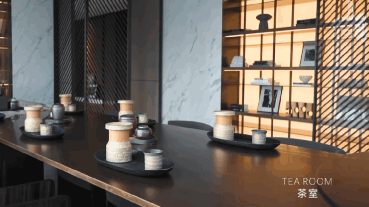 充分感知“世界合一,时间合一”的精神内涵,于客厅一隅打造一处开放式茶空间,一面拥抱杭州的澎湃与隽美,一面追求情感的表达与共鸣、内心的探索与和解。 从空间无界延伸至精神无界——万物并作,吾观心海。