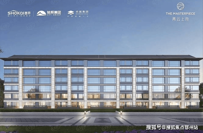 青云上府采用 现代简约风格,外立面以灰白色为主间以大面积玻璃搭配,显得稳重大气。