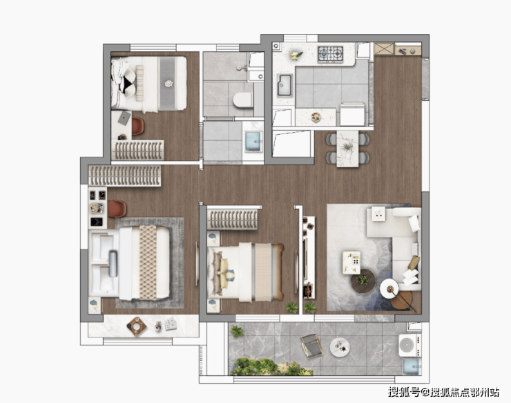 [舒居] 南向双卧,明媚起居;北向次卧,随心百变