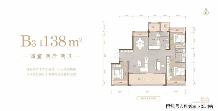 建面约138㎡风韵洋房, 四开间朝南,横向约14米采光面,超大落地窗 ,迎阳光入室,户内4个可利用采光飘窗,阳光与空间皆免费;可扩展阳光厨房,实现餐厨互动,与家人一起享受美好的烹饪时光。