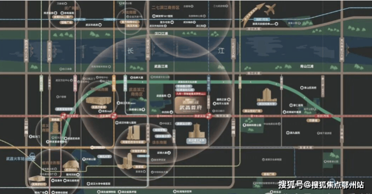 项目周边武昌核心商圈、徐东商圈、武昌万象城商圈、二七滨江商圈等商圈环伺,还有武商梦时代、武昌万象城、武汉SKP等现象级商业地标。