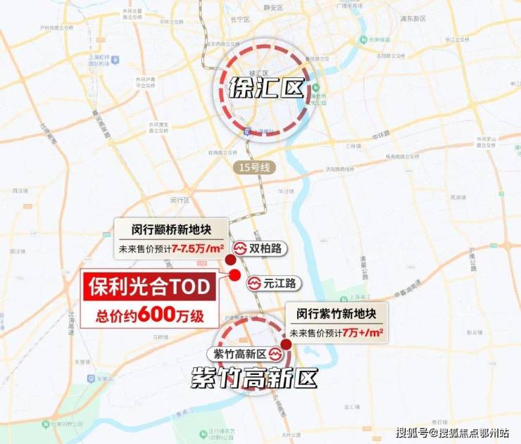 保利·光合TOD四至范围:东至柳安路、南至元江路,西至都会路,北至梅莲路。由「闵行颛桥MHP0-0601单元10-11地块(地上空间)」和「闵行吴泾MHP0-0601单元15-05、17-03地块」三宗地块以及保利联发光合臻园组成。